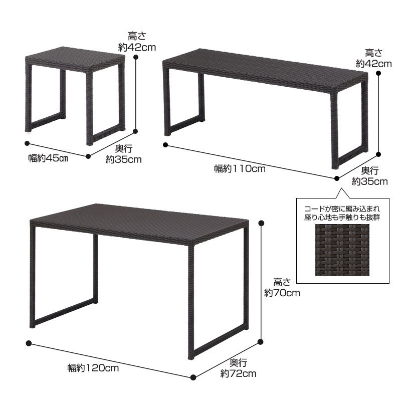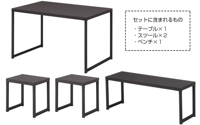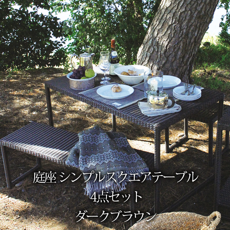 庭座シンプルスクエアテーブル4点セット ダークブラウン /D|青山ガーデン【公式】通販