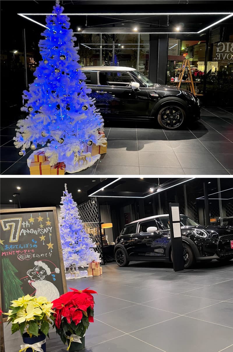 ホワイトクリスマスをイメージしたツリーがショールームに展示されました。スタッフもお客様も笑顔になるクリスマスの雰囲気を演出してくれました。