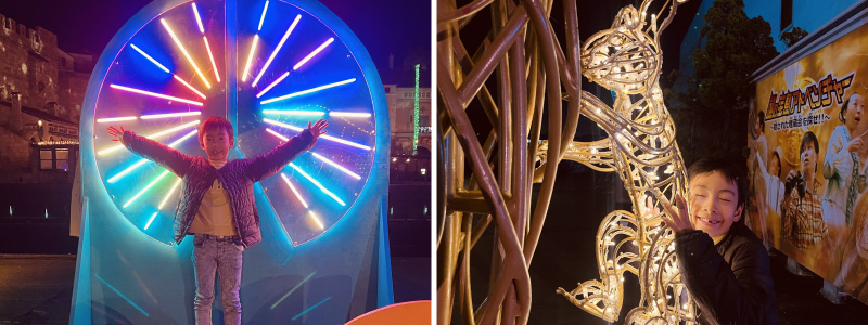 そのすぐ前には、巨大なイルミネーションツリーが出迎えてくれて、息子も周りの子供も思わず踊りだすほど興奮していました。入口から子供が大はしゃぎで、親としてもとても嬉しいですね。