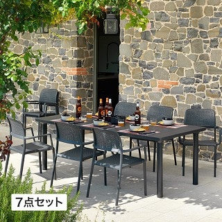 リベッチオ テーブル&チェアー7点セット ダークグレー /B