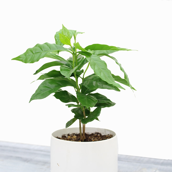 つややかな緑の葉が美しいミニ観葉・コーヒーの木。コンパクトながら存在感があり、室内に爽やかな雰囲気をプラス。初心者にも育てやすい人気の観葉植物です。