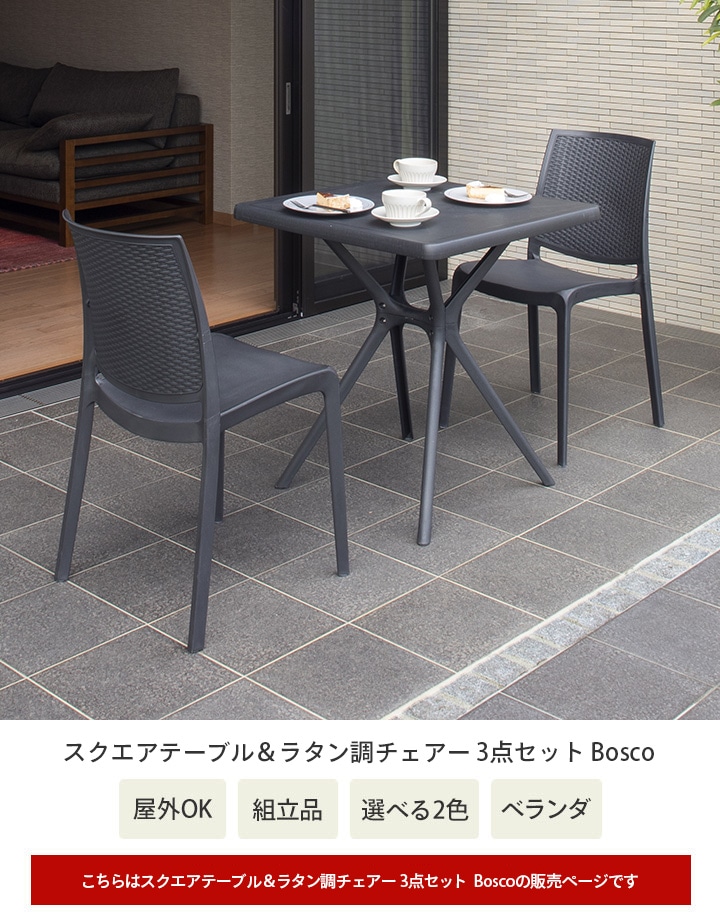 スクエアテーブル&ラタン調チェアー 3点セット Bosco(チャコールグレー) /B|青山ガーデン【公式】通販