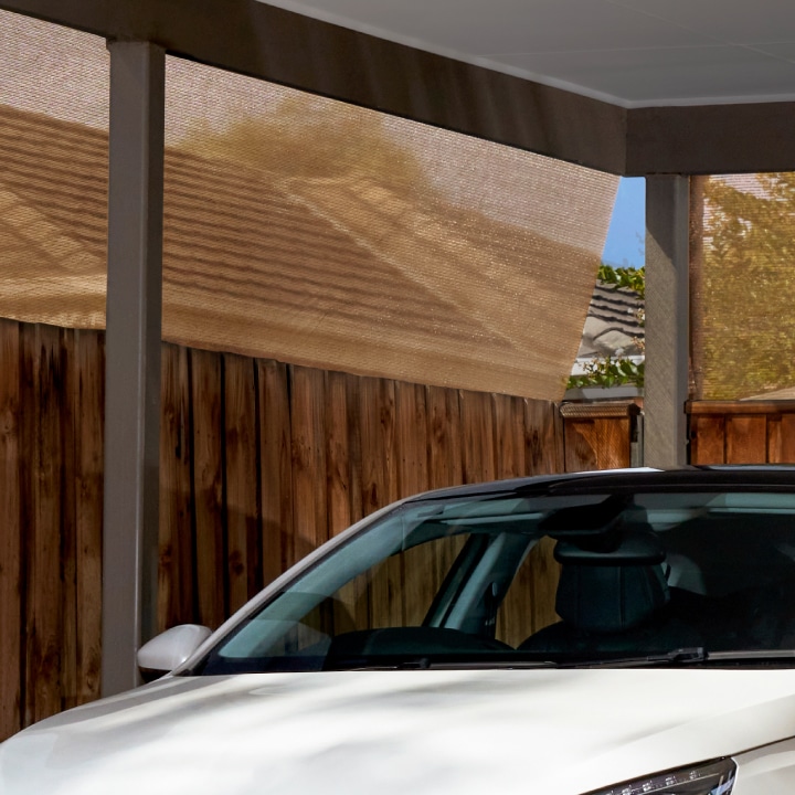 視線を遮って、プライベートな空間に。フェンスやカーポートに取り付けるだけで、目隠し効果を発揮します。