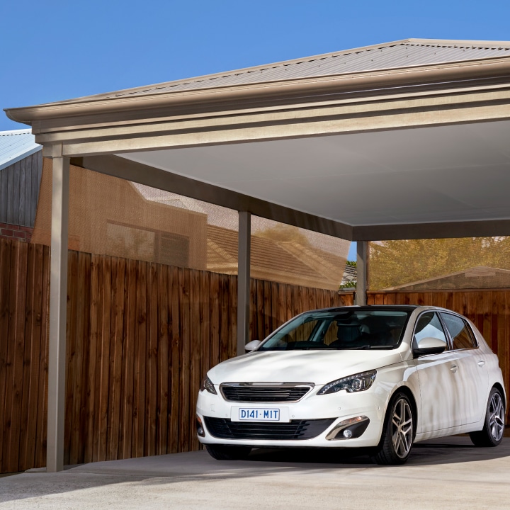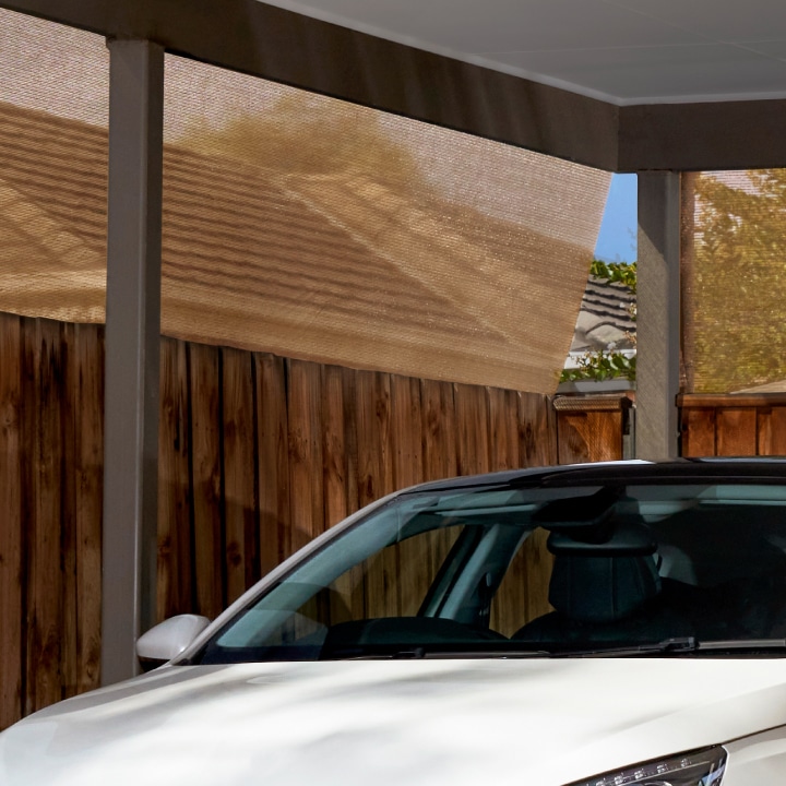 視線を遮って、プライベートな空間に。フェンスやカーポートに取り付けるだけで、目隠し効果を発揮します。