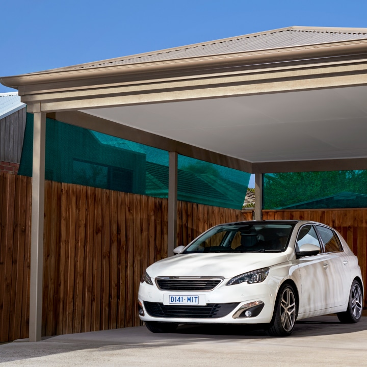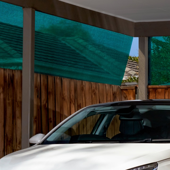 視線を遮って、プライベートな空間に。フェンスやカーポートに取り付けるだけで、目隠し効果を発揮します。