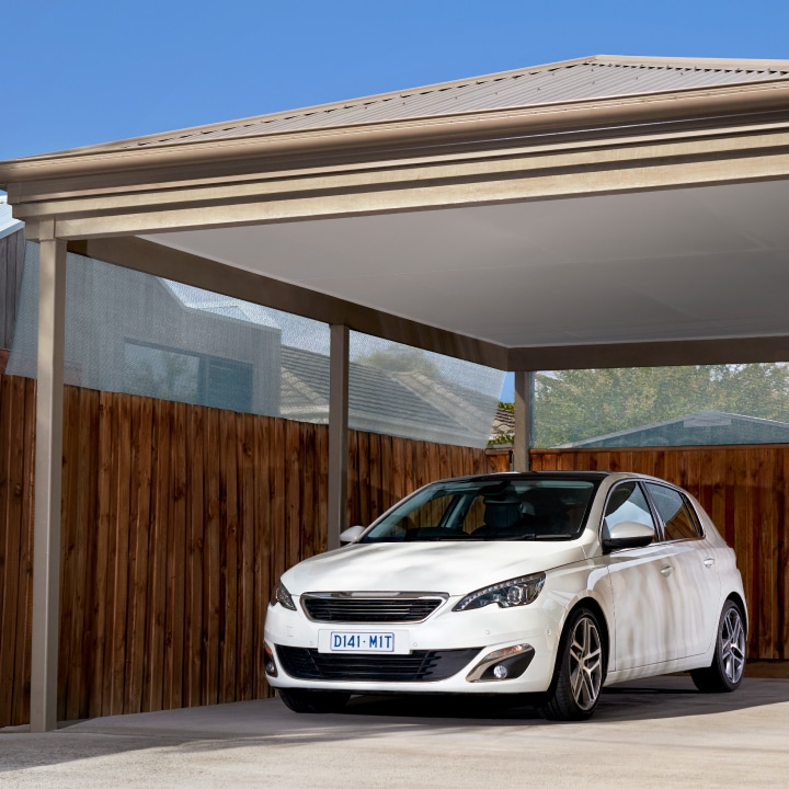 視線を遮って、プライベートな空間に。フェンスやカーポートに取り付けるだけで、目隠し効果を発揮します。