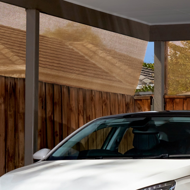 視線を遮って、プライベートな空間に。フェンスやカーポートに取り付けるだけで、目隠し効果を発揮します。