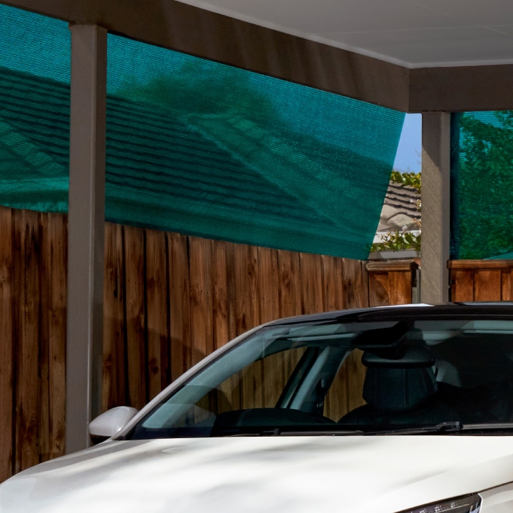 視線を遮って、プライベートな空間に。フェンスやカーポートに取り付けるだけで、目隠し効果を発揮します。
