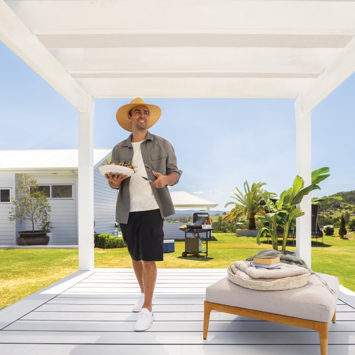 強い日差しをカットして、心地よい屋外空間に。人もペットも快適に過ごせるガーデンシェード。