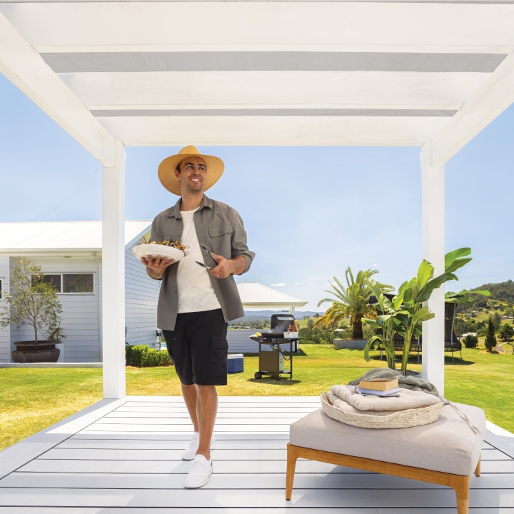 強い日差しをカットして、心地よい屋外空間に。人もペットも快適に過ごせるガーデンシェード。