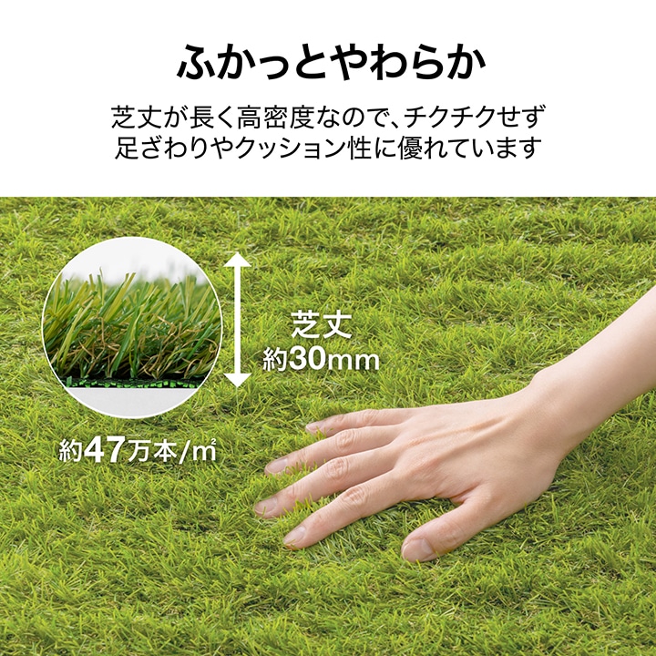 防草シート一体型で雑草が生えにくい人工芝