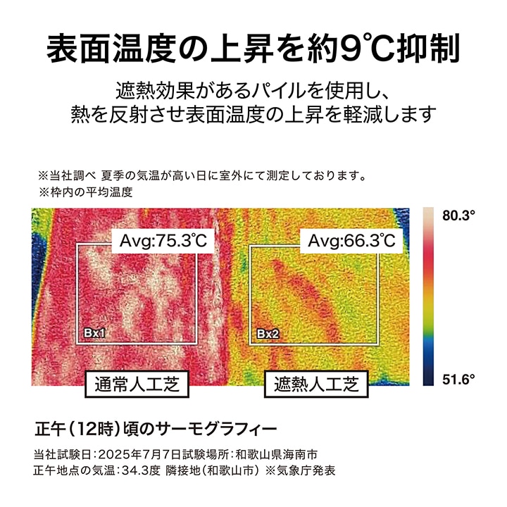 芝に水がたまりにくい+遮熱効果のある人工芝