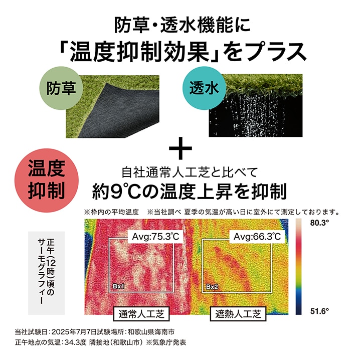 芝に水がたまりにくい+遮熱効果のある人工芝