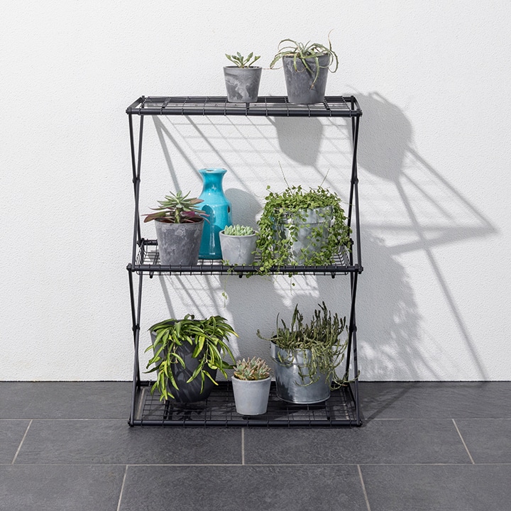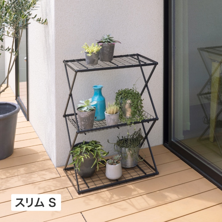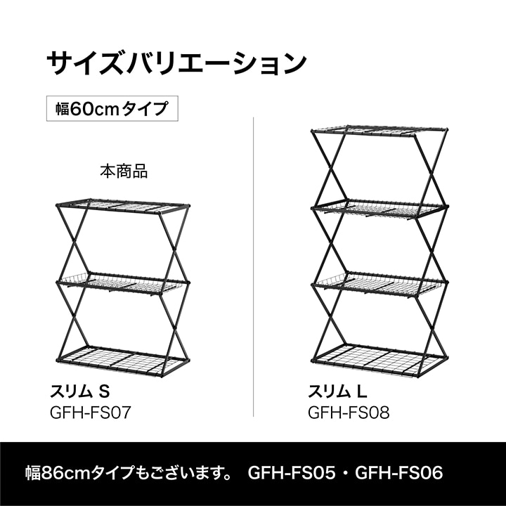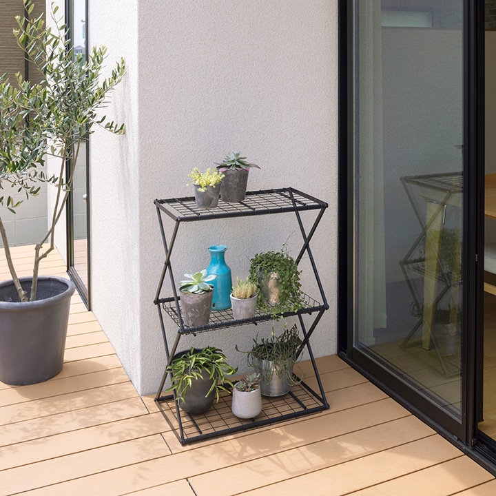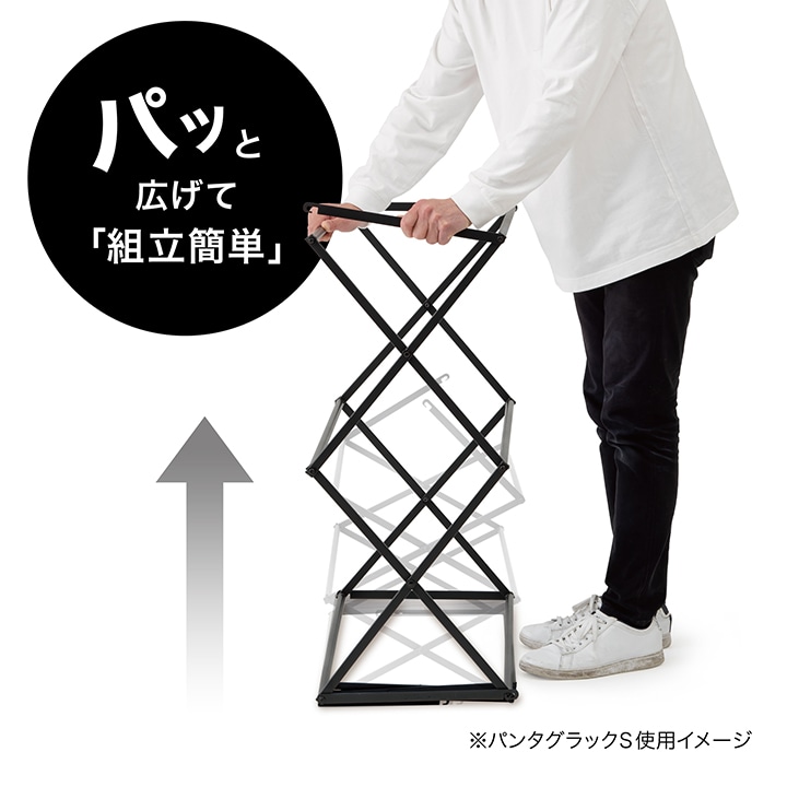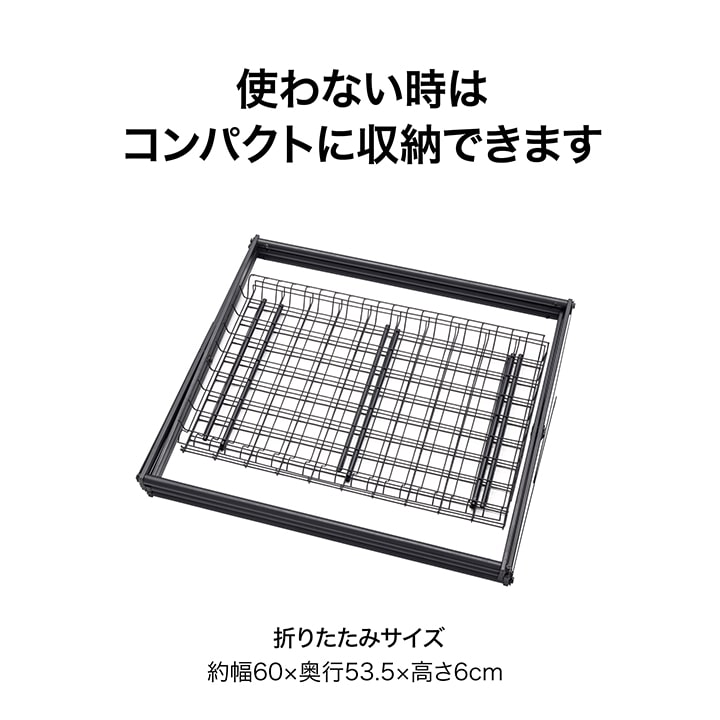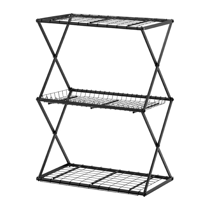 折りたたみ式の収納ラック。使用しない時はコンパクトにして収納可能です。