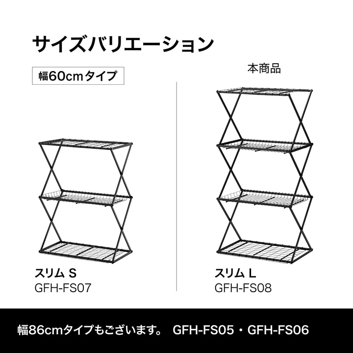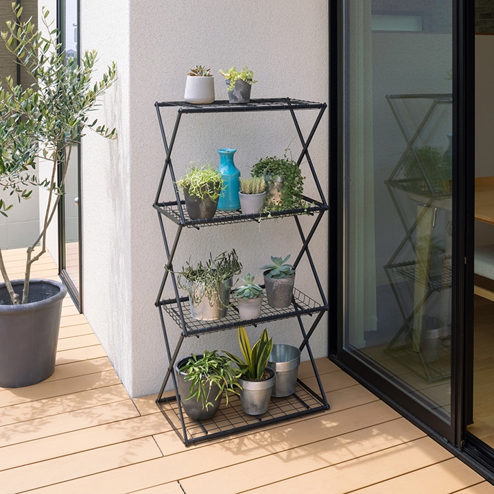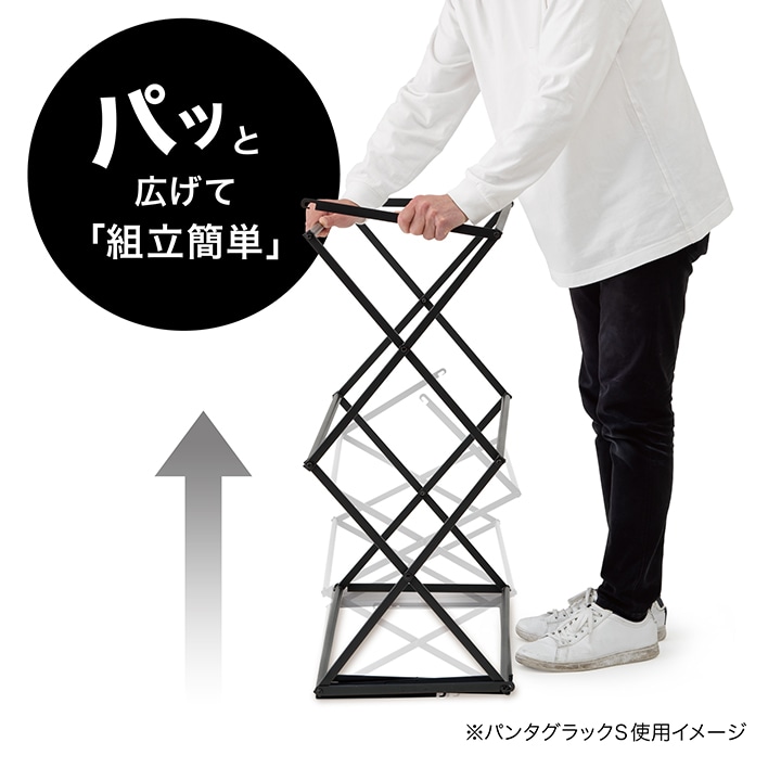 折りたたみ式の収納ラック。使用しない時はコンパクトにして収納可能です。