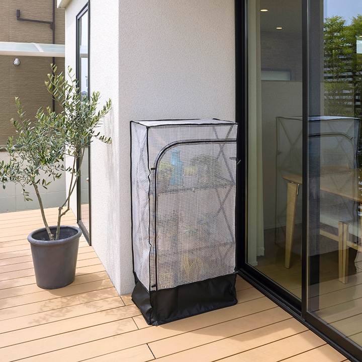 寒さや霜から植物を守るビニール温室!フレームは折り畳み式、シーズンオフにはコンパクトに収納できます。