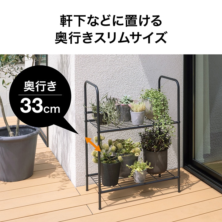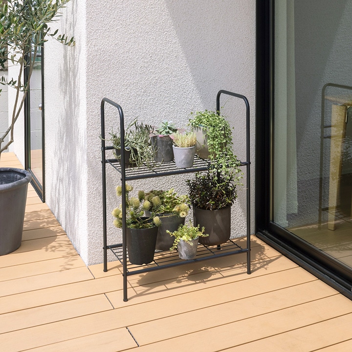 頑丈だから、置きたい植物を安心して置ける。安定感があるので、重い鉢や複数の鉢を置いても大丈夫!