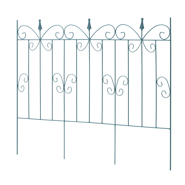 さまざまな用途に使える高さ90cmのエレガントなフェンス。優雅な曲線で描いたパピヨンの模様が、花々と美しく共演するでしょう。高さ180cmのトレリスタイプと同じく、フィニアルがクラシカルな雰囲気を演出しつつ、全体のイメージを引き締めます。