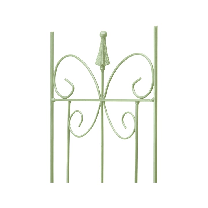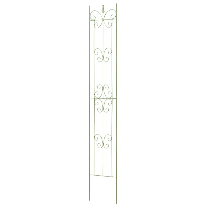 優雅な曲線と蝶のモチーフが施された高さ180cmのスリムなトレリス。幅30cmのコンパクトサイズなので、限られたスペースでも縦のラインを強調でき、狭い庭や花壇の中でも取り入れやすいのが特長です。バラやクレマチスを絡めるのに最適。冬の間も造形美が庭のアクセントになり、フィニアルの装飾がクラシカルな雰囲気を演出します。