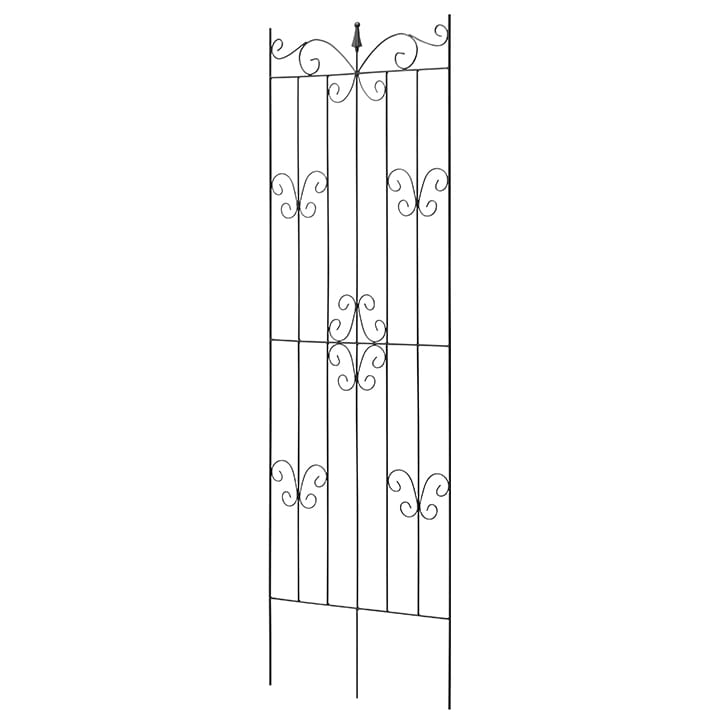 バラやクレマチスを絡めるのに最適な高さ180cmのトレリス。花がない冬の間も、エレガントなパピヨン(蝶)模様のトレリスが庭を美しく演出してくれます。フィニアルと呼ばれる矢尻型の装飾は、クラシカルな雰囲気を演出しつつ、全体のイメージを引き締めます。