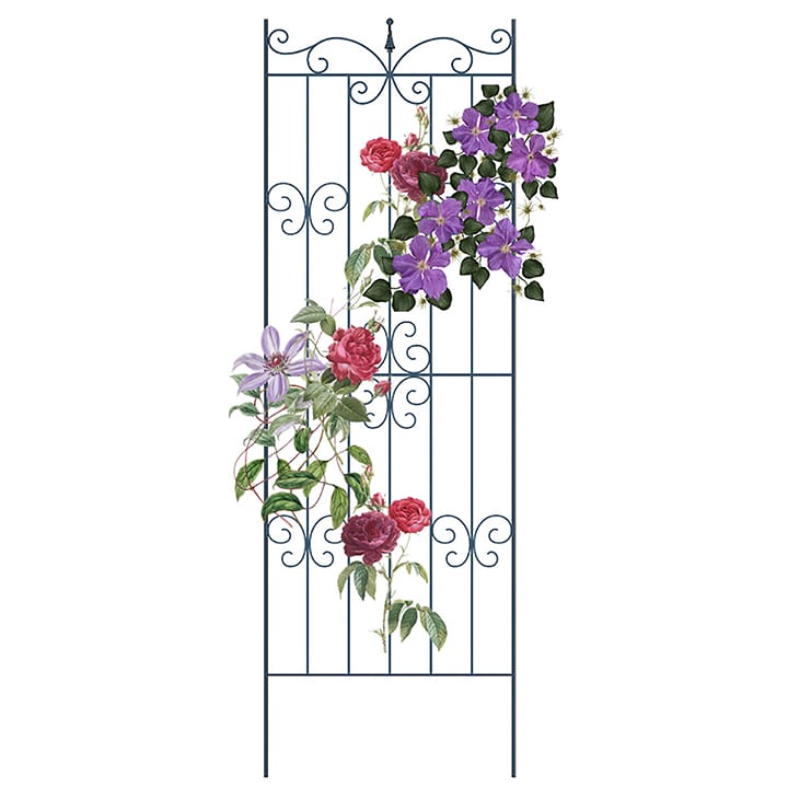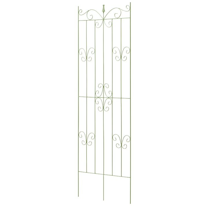 バラやクレマチスを絡めるのに最適な高さ180cmのトレリス。花がない冬の間も、エレガントなパピヨン(蝶)模様のトレリスが庭を美しく演出してくれます。フィニアルと呼ばれる矢尻型の装飾は、クラシカルな雰囲気を演出しつつ、全体のイメージを引き締めます。