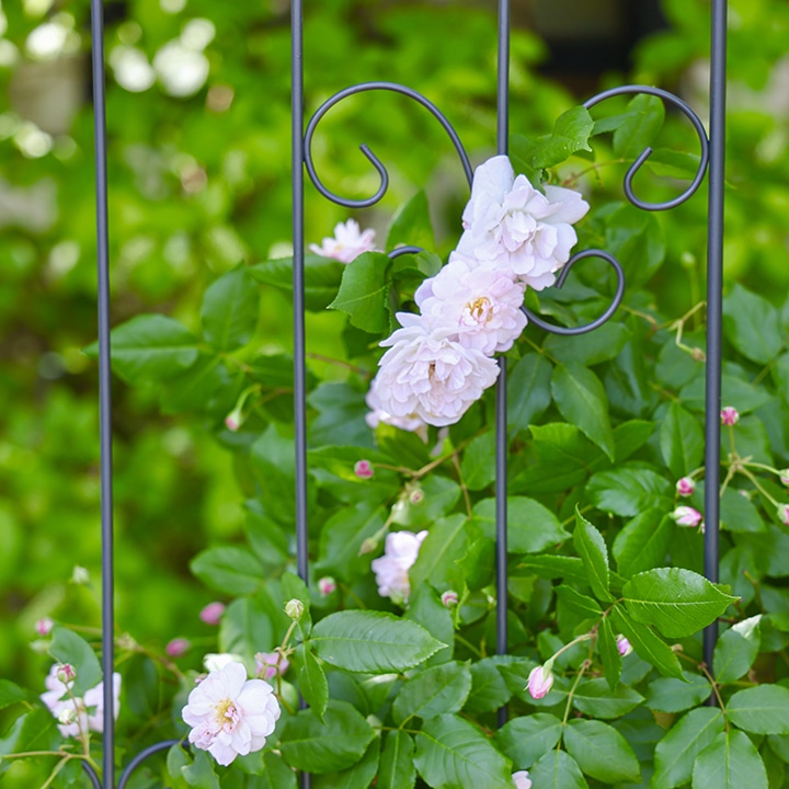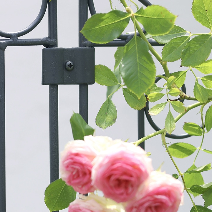 大きめのクレマチスやつるバラを立体的に育て、華やかな花の壁をつくるのに最適です。