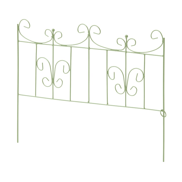 優雅な曲線と蝶のモチーフが可憐なアクセントになるミニフェンス。花壇の縁取りや植栽帯の区切りにちょうどよく、コンテナの背景としても使いやすい大きさです。デザイン性が高く、庭に上品な雰囲気を添えながら、植物を整える実用性も兼ね備えています。