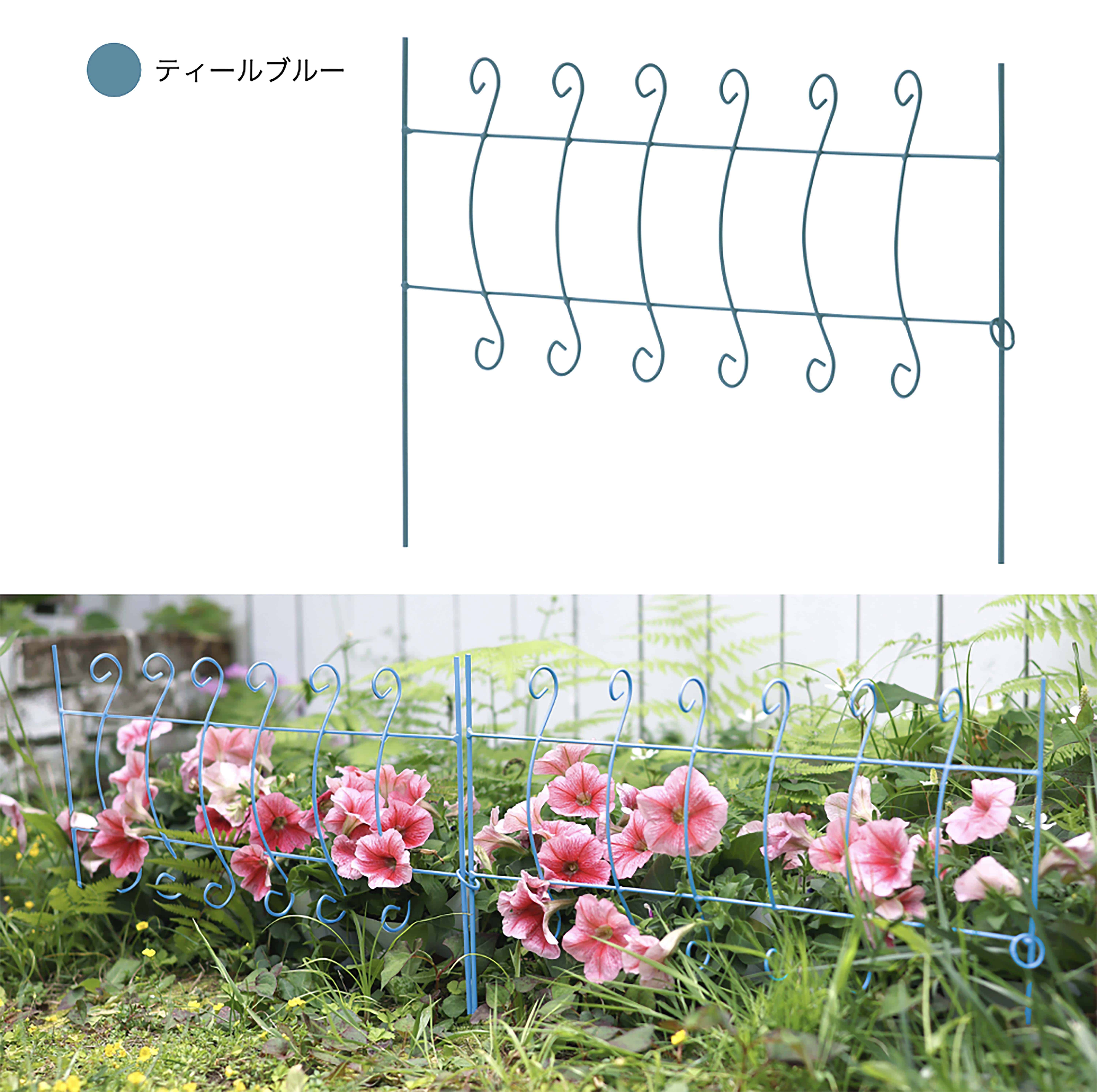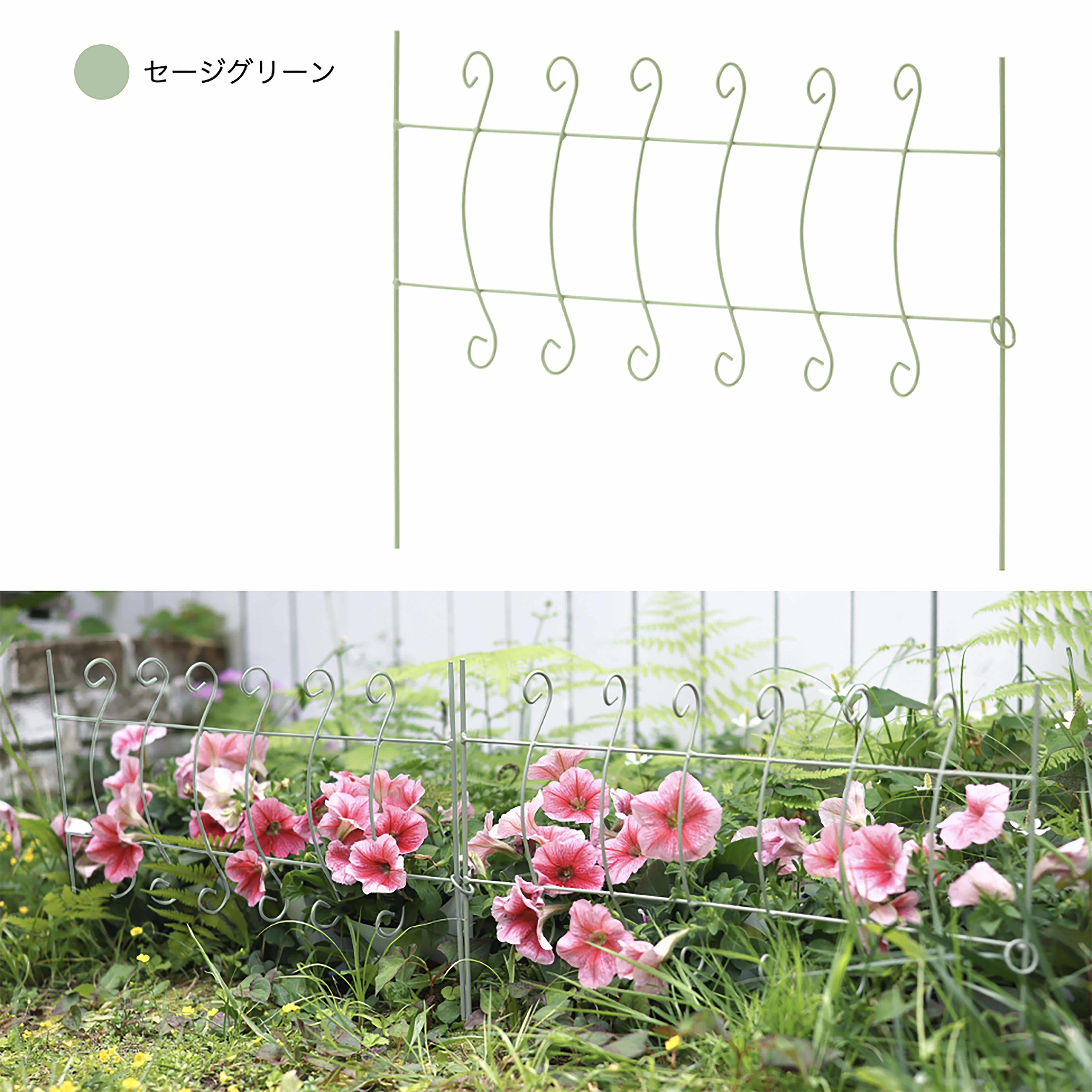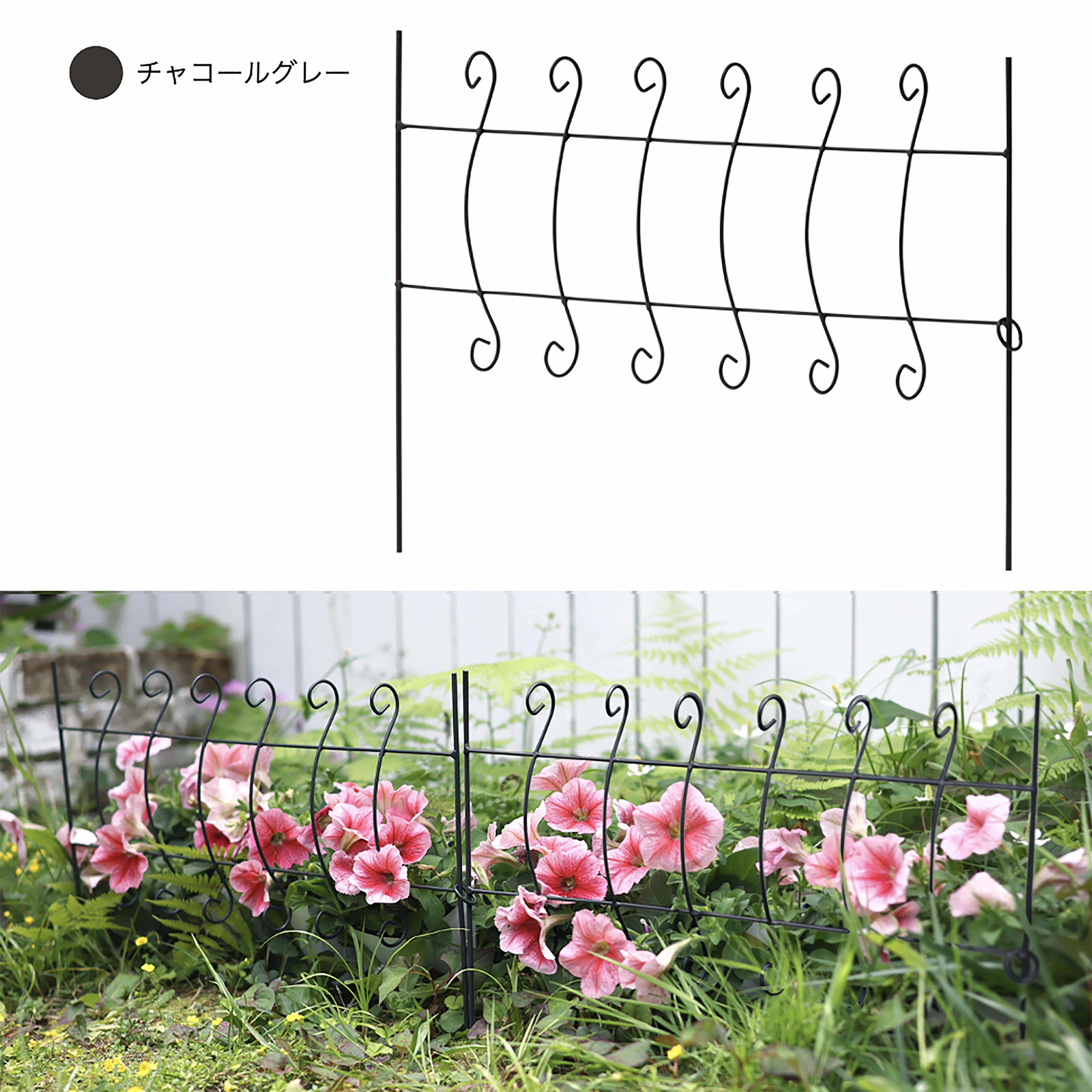 複数を連結して用いることで、花壇や植栽帯の囲いとして機能するミニフェンス。広がる植物を抑えたり、花の支え、またコンテナの飾りとしても活躍します。ワンちゃんの花壇の掘り返し防止にもおすすめです。
