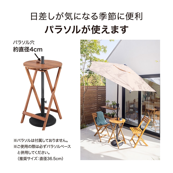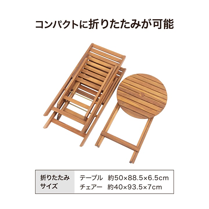 | 備考 : | [テーブル]折りたたみ可 折りたたみサイズ:約50cm×88.5cm×6.5cm [パラソル穴]約直径4cm [チェアー]座面高さ:約43.5cm 折りたたみ可 折りたたみサイズ:約40cm×93.5cm×7cm |