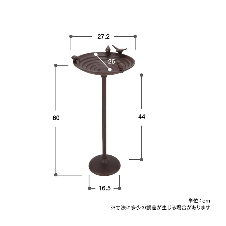 水盤は直径27.2cmとゆったりサイズ。段差が付けられており、野鳥が足を掛けやすく、水を飲んだり水浴びをしたりと、安心して羽を休められる設計です。