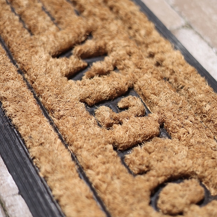 スリムでスマートな長方形のドアマット。WELCOMEの言葉がお客様をお出迎えします。耐久性の高いココナッツファイバーがしっかり泥を落とすので、玄関前にぴったり。インテリアに取り入れても◎。