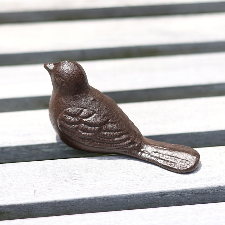 尾羽を活かしたくさび形のデザインが、ドアをしっかりホールド。職人の手仕事によって仕上げられた鋳鉄製の小鳥モチーフは、飾っても可愛い、使って頼もしい一羽です。アンティーク調の質感とシンプルなフォルムが、ナチュラルな暮らしにしっくりと溶け込みます。