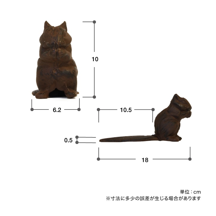 両手に食べ物を抱えて、何かを頬張るのに夢中な姿がなんとも愛らしい、リスモチーフのドアストッパー。しっぽがくさび形になっており、ドアの下に差し込めば、しっかりと開いたまま固定してくれます。鋳鉄製の重みと、手仕事による繊細な造形が魅力です。