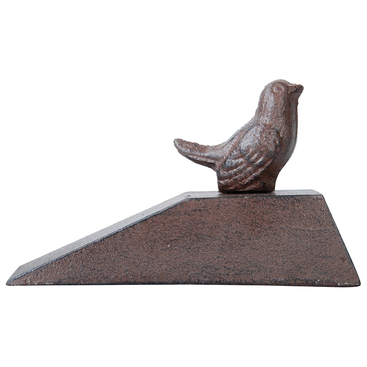台の上でさえずる小鳥がデザインされたドアストッパー。昔ながらの職人技で手作りされたアイアン製ストッパーは、安定感ある重量とくさび形の形状で、ドアをしっかりと固定します。アンティーク風な質感も相まって、格調ある雰囲気を演出してくれる一品です。