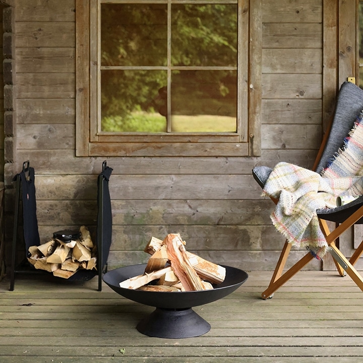 機能的で無駄がない、美しいシルエットのファイヤーボウル。落ち着いた雰囲気で、どんな庭やテラスにもよく馴染みます。足が短く、重心が低く安定しているのも安心。