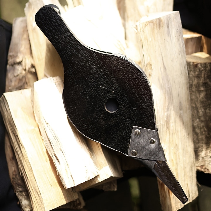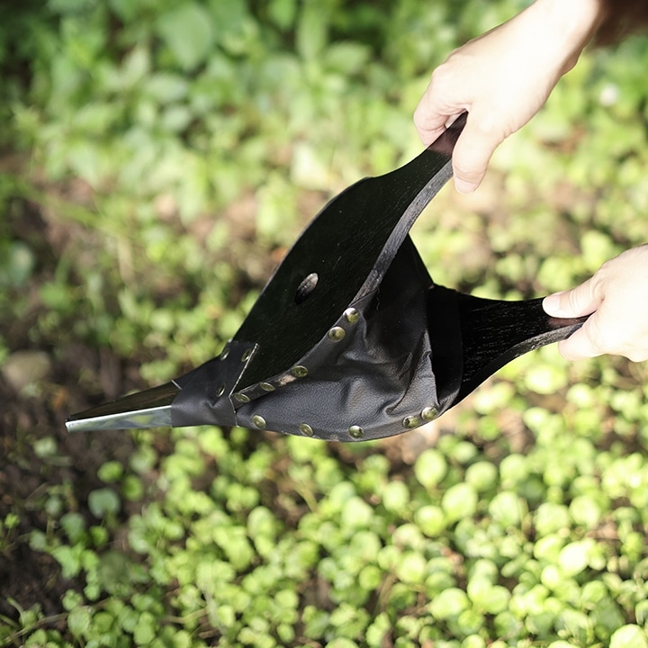 「ベローズ(Bellows)」は、かつて鍛冶屋が火力を強めるために使っていた「吹子(ふいご)」に由来する道具。木と合皮でつくられたレトロな見た目が、焚き火時間にクラフト感と道具の楽しさを添えてくれます。吊り下げ収納できるフック付きで、使わないときも絵になります。