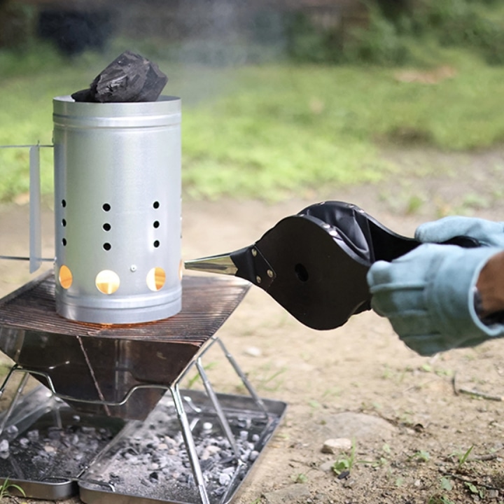 意外と難しい火起こしの際も、ベローズがあれば、金属製の細いノズルから炎の中心にピンポイントで酸素を供給し、簡単に勢いよく燃え上がる炎を作り出すことができます。クラシックなポンプ式で、顔を近づけて息を吹き込む必要もなく、レトロな雰囲気もおしゃれ。