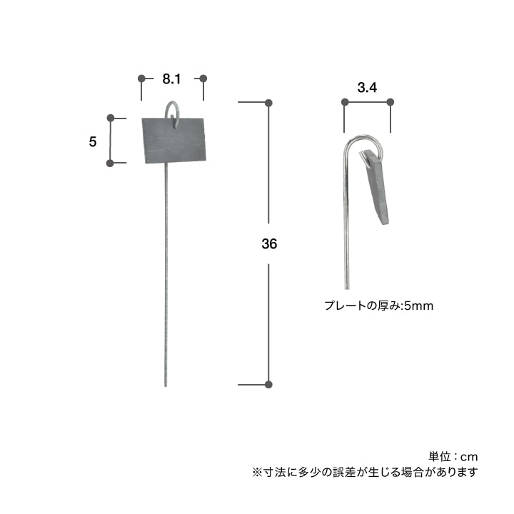 金属製のポールにスレート板を付けた、シャビーシックなプランツタグ。地面からプレートまで高さがあるため、植物に埋もれることなく、少し離れた場所からでも読みやすいのも魅力です。防水性のペンやマーカーに対応。