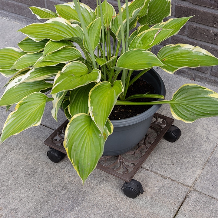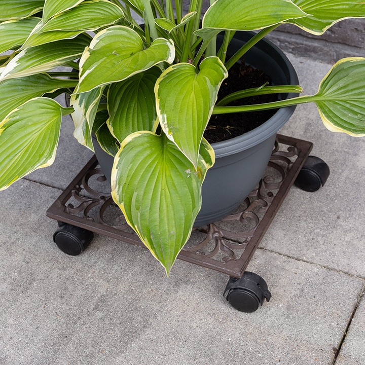 植木鉢9号程度まで対応(耐荷重30kg)の、屋外用角型プランツトレー。キャスター付きなので、重たい鉢植えも片手でスイスイ移動でき、模様替えや掃除、日照管理も自由自在です。