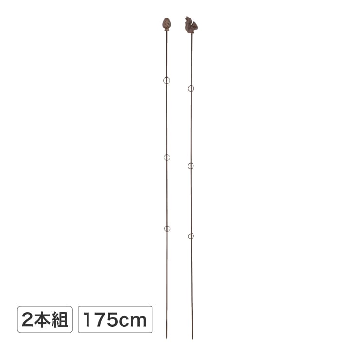 上部には8種類の装飾モチーフ(2本セットで4パターンから選択可)。アンティークカラーの鋳鉄製で、植物が絡みつく季節以外にも庭の景色を豊かに演出します。「ただの支柱」ではなく、植物と共に庭を引き立てるガーデンオブジェとしての魅力も兼ね備えています。