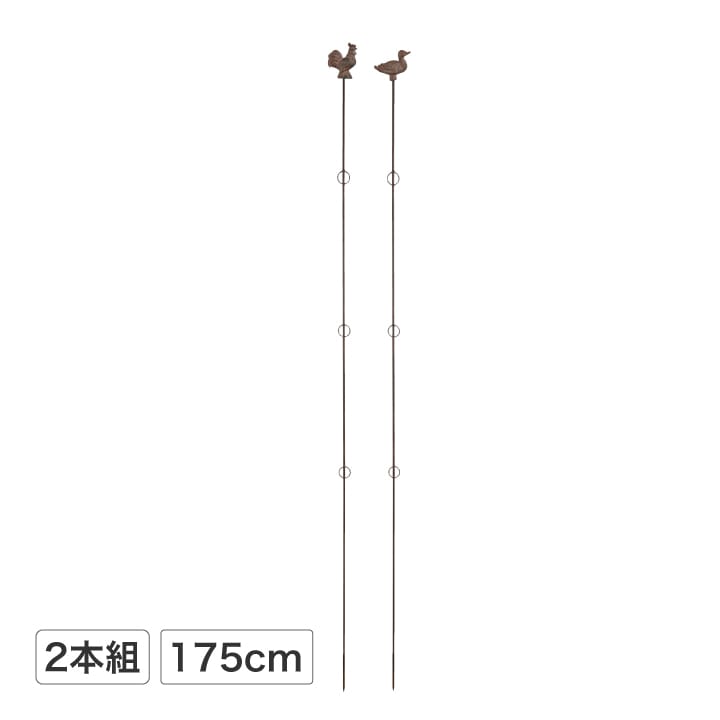 上部には8種類の装飾モチーフ(2本セットで4パターンから選択可)。アンティークカラーの鋳鉄製で、植物が絡みつく季節以外にも庭の景色を豊かに演出します。「ただの支柱」ではなく、植物と共に庭を引き立てるガーデンオブジェとしての魅力も兼ね備えています。