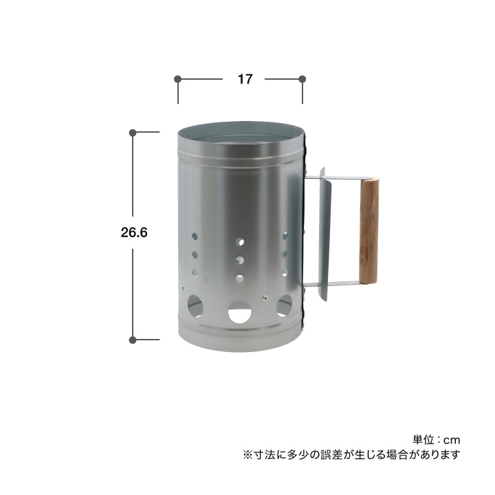 BBQや焚き火などで炭に素早く火をつけるための便利なツール。風で火が消えるのを防ぎつつ、筐体の通気口から空気が入り、効率よく燃焼し炭に火がつきやすくなります。十分に火が回ったら、取っ手を持ち安全に燃えた炭をBBQグリルや焚き火台に移すことができます。