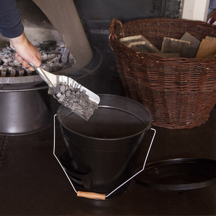 普通のスコップでは灰がこぼれたり舞い上がったりして、後始末で服や周囲を汚してしまったり、火傷の危険もありますが、専用スコップはサイドの縁が立ち上がっているためそんな心配もありません。シャベルはホルダーに収まるため紛失せず、玄関脇や物置に置いてもスマート。火を楽しむアウトドアや庭時間において、調理器具や薪と同じくらい「灰入れバケツ&シャベル」は必須アイテム。安全と安心を守るために、必ず揃えておきたいセットです。
