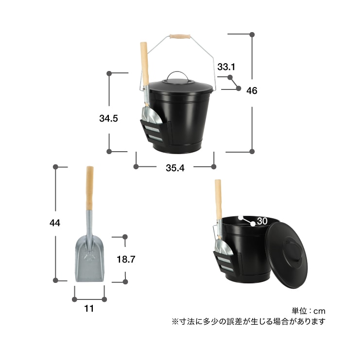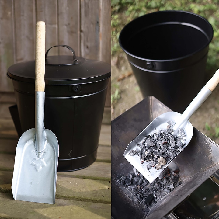 バーベキューや焚火など、火を使った後の処理に欠かせない、灰入れバケツと専用シャベルのセット。シャベルホルダー付きで、使いたいときにサッと使え、収納場所にも困りません。