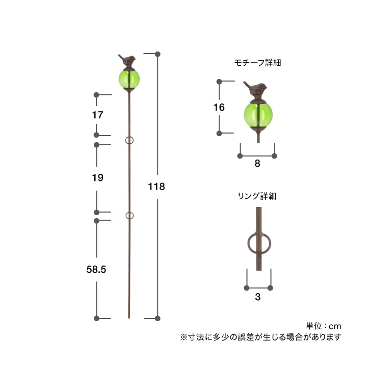 | 備考 : | 地中に差し込んでお使いください。土の状態に応じて差し込む深さを調整し、安定させてください。 |