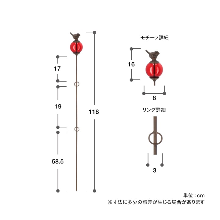 | 備考 : | 地中に差し込んでお使いください。土の状態に応じて差し込む深さを調整し、安定させてください。 |