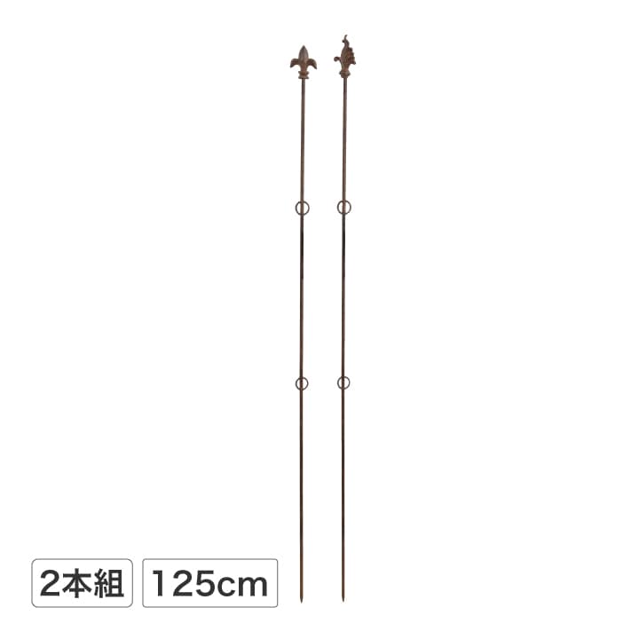 上部には8種類の装飾モチーフ(2本セットで4パターンから選択可)。アンティークカラーの鋳鉄製で、植物が絡みつく季節以外にも庭の景色を豊かに演出します。「ただの支柱」ではなく、植物と共に庭を引き立てるガーデンオブジェとしての魅力も兼ね備えています。