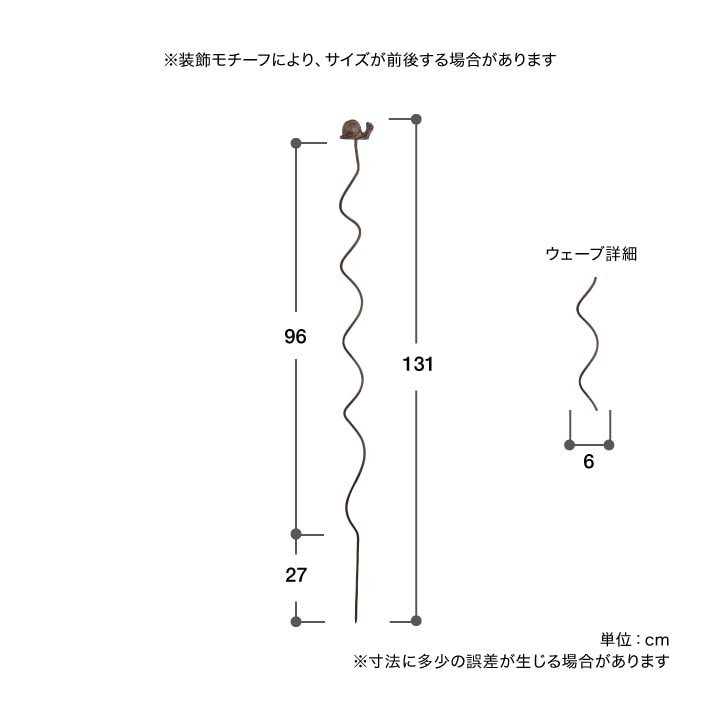 「プランツサポート最押です! デザインに一目惚れしました。お庭にこんな素敵なモチーフ付きのアイテムが並んでいるだけでもとても嬉しくなります。狭い庭で陽の光を求めて斜めになってしまうような背の高い植物もこれなら見栄えもよく真っ直ぐとなりそう。ウェーブのもシンプルなのもどちらも良いです。」