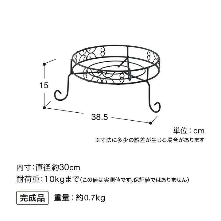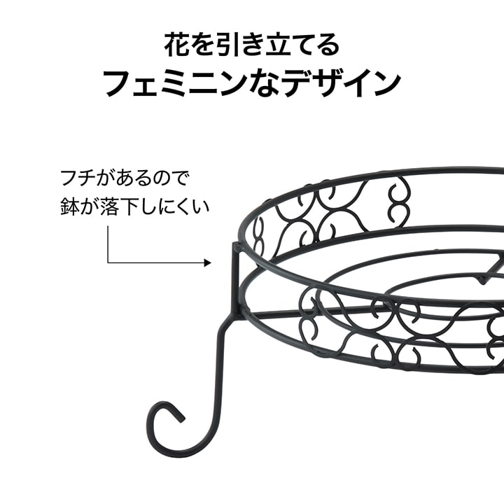 お花が美しく映えるフラワースタンド。フチがあるので鉢が落下しにくい、大き目の鉢が置ける内径30cm設計。