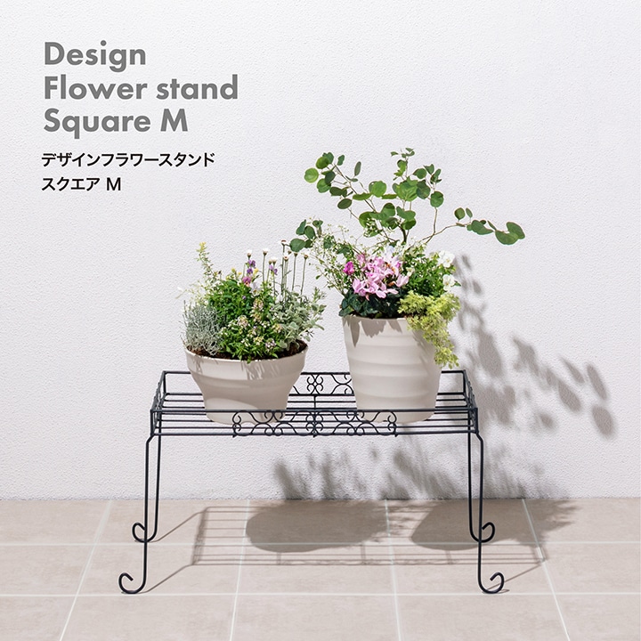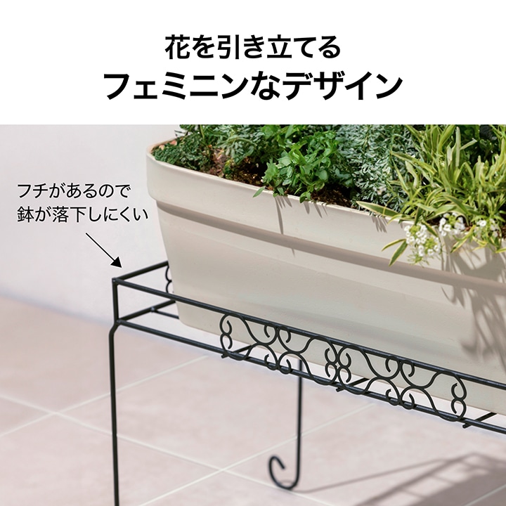 お花が美しく映えるフラワースタンド。フチがあるので鉢が落下しにくい、大き目の鉢が置ける内寸60×30cm設計。